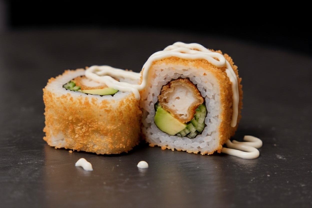 Tempura Gamba mit avocado gurke um panko crunch mit mayoniase