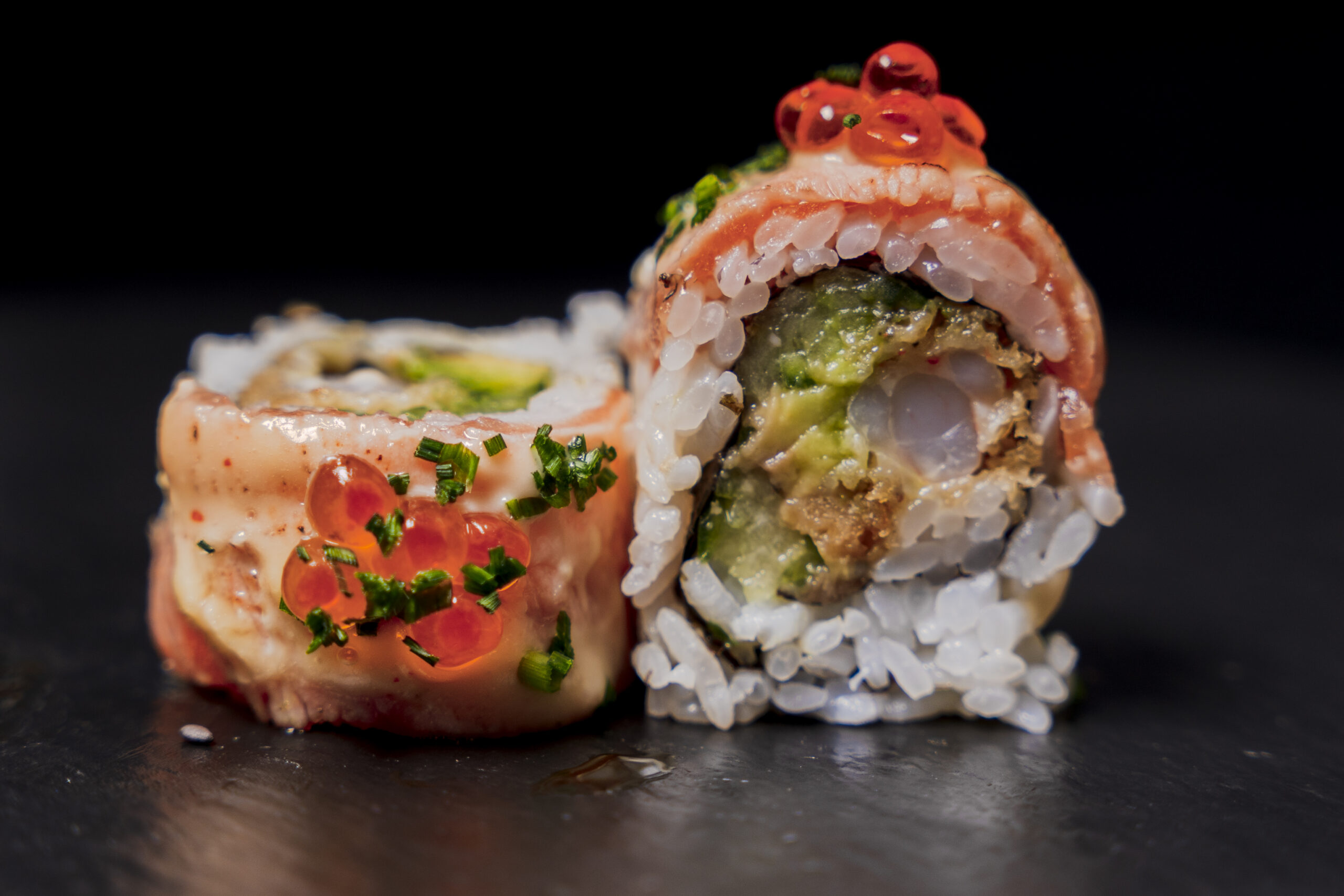 Gurke Lachs Avocado Topping oben keta kaviar 20 gm